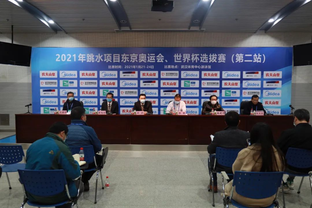 车谷融媒1月20日讯 1月19日下午,2021年跳水项目东京奥运会、世界杯选拔赛(第二站)新闻发布会在武汉体育中心游泳馆新闻发布厅举行。