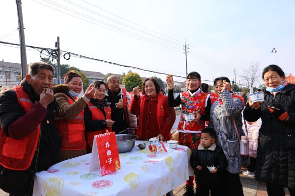 吹糖人、葫芦蛋仔这些传统小食让小朋友们挪不开眼。炸圆子是社区为居民准备的传统美食,居民们纷纷围聚在周围,观看炸圆子的过程,并迫不及待地品尝着刚出锅的肉圆子。