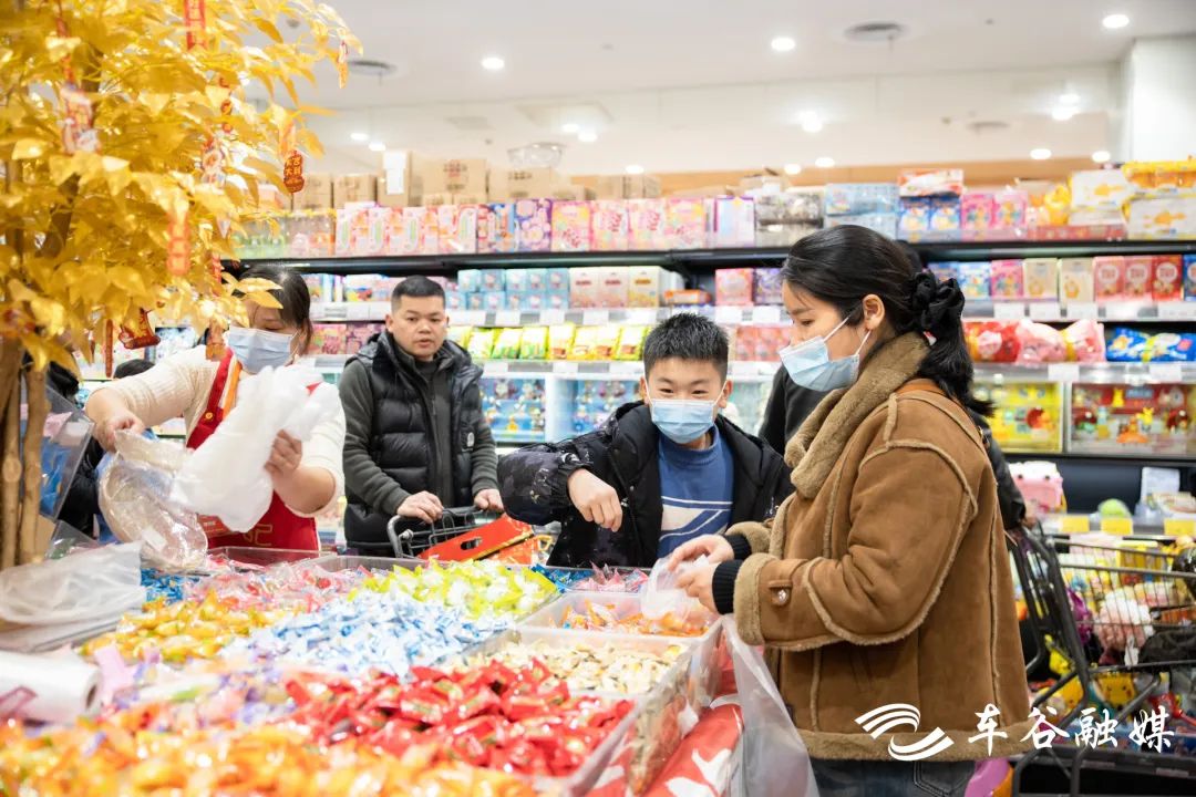 车谷融媒1月28日讯 随着蛇年春节的到来,武汉经开区消费市场人气足、需求旺。多家商超推出新春主题活动,商场内人头攒动,年货琳琅满目,一片红火景象。