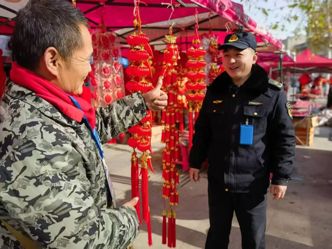 “新年好,跟您宣传一下,从小年到正月十五期间,在超市门口可以免费摆摊,但是不能压盲道,同时也请您注意保持环境卫生。”当天,纱帽街道综合执法中心队员邓笑对其管辖片区的商贩说。