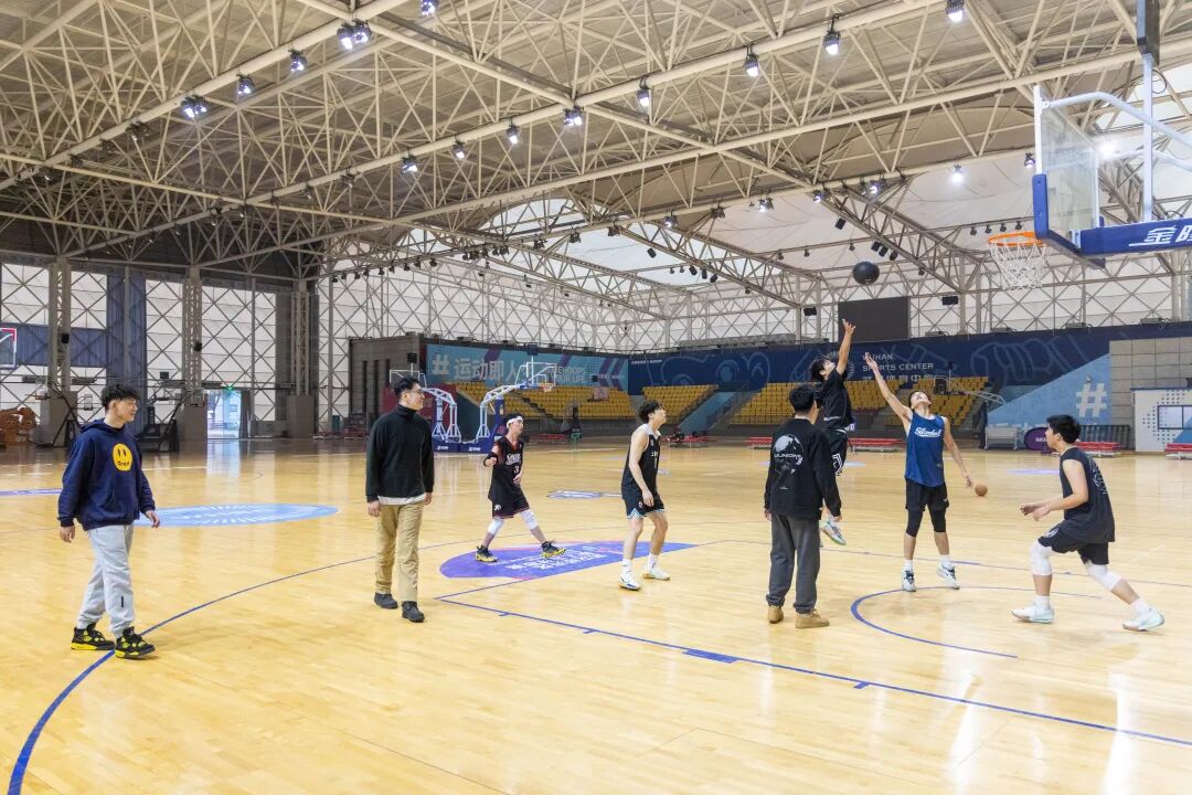 1月31日上午,在武汉体育中心合和篮球馆,放假回家的大学生潘为天跟朋友、篮球爱好者自发进行一场篮球友谊赛。现场,运球、传球、投球、投篮一气呵成,激烈的对抗引来阵阵掌声。潘为天说,体育中心篮球馆春节低免开放,吸引了不少跟他一样的篮球爱好者,“在篮球场上过大年,更有意思。”
