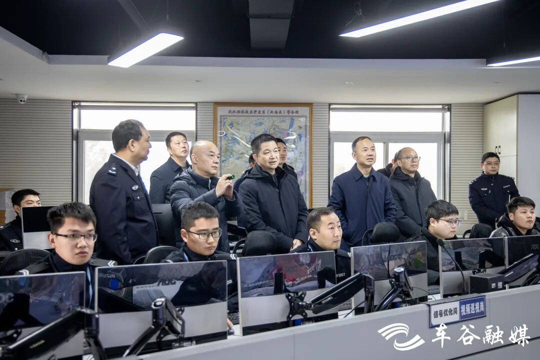 春节期间,武汉经开区交通流量平稳,路网畅通有序。在区交通大队指挥室,唐超通过实时监控系统,查看全区交通重要点位和路段车流情况,并详细了解警力部署、值班备勤等工作情况。