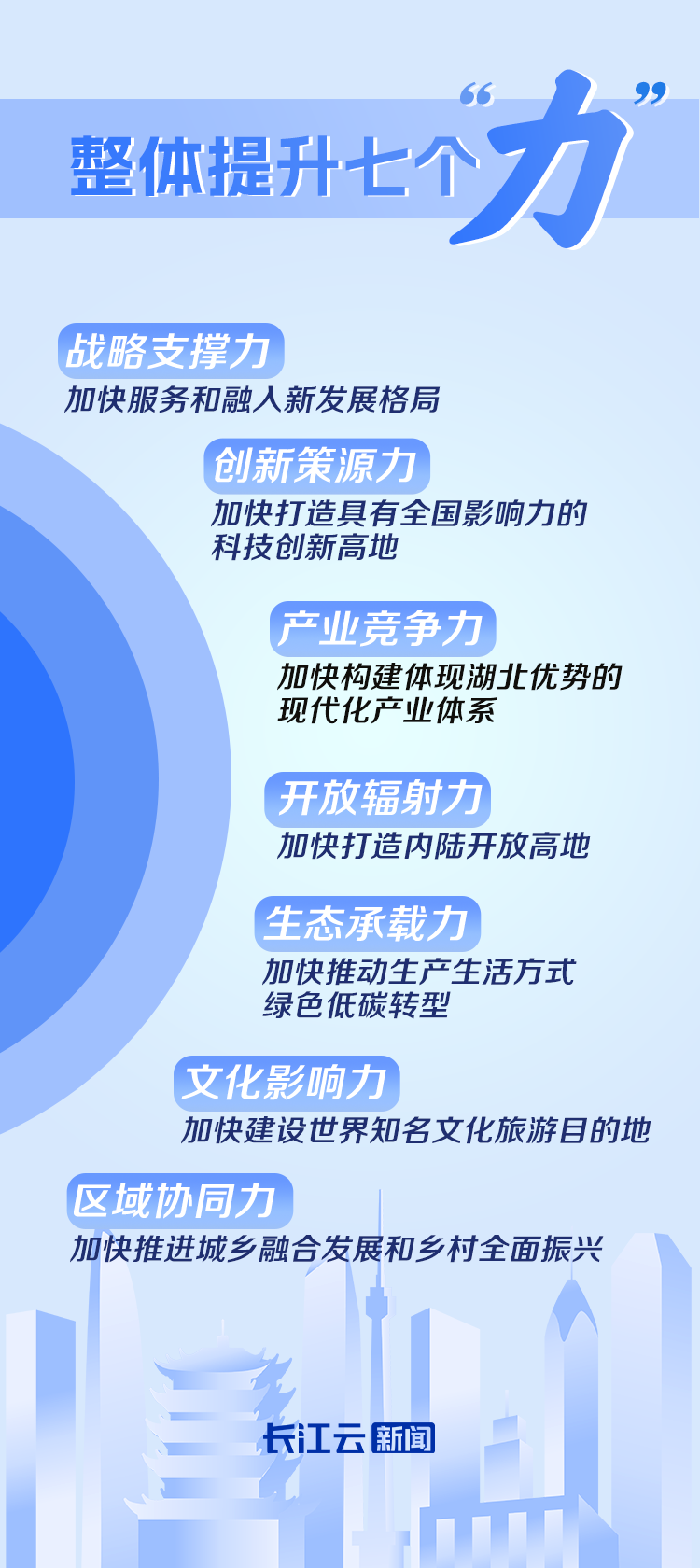 为了全面建成中部地区崛起的重要战略支点,湖北重点实施“七大战略”,整体提升“七大能力”。