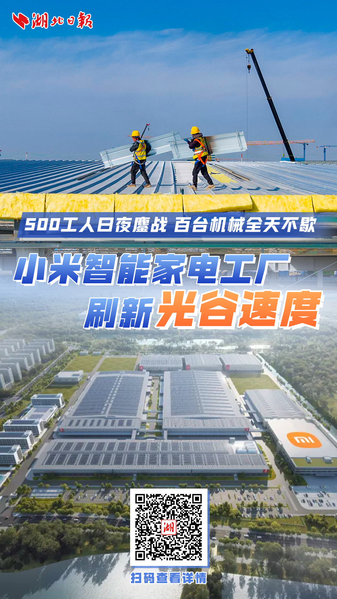 2月8日,光谷左岭大道东侧,小米智能家电工厂建设现场机车轰鸣,500多名建筑工人和上百台大型机械同步作业,24小时不停歇。