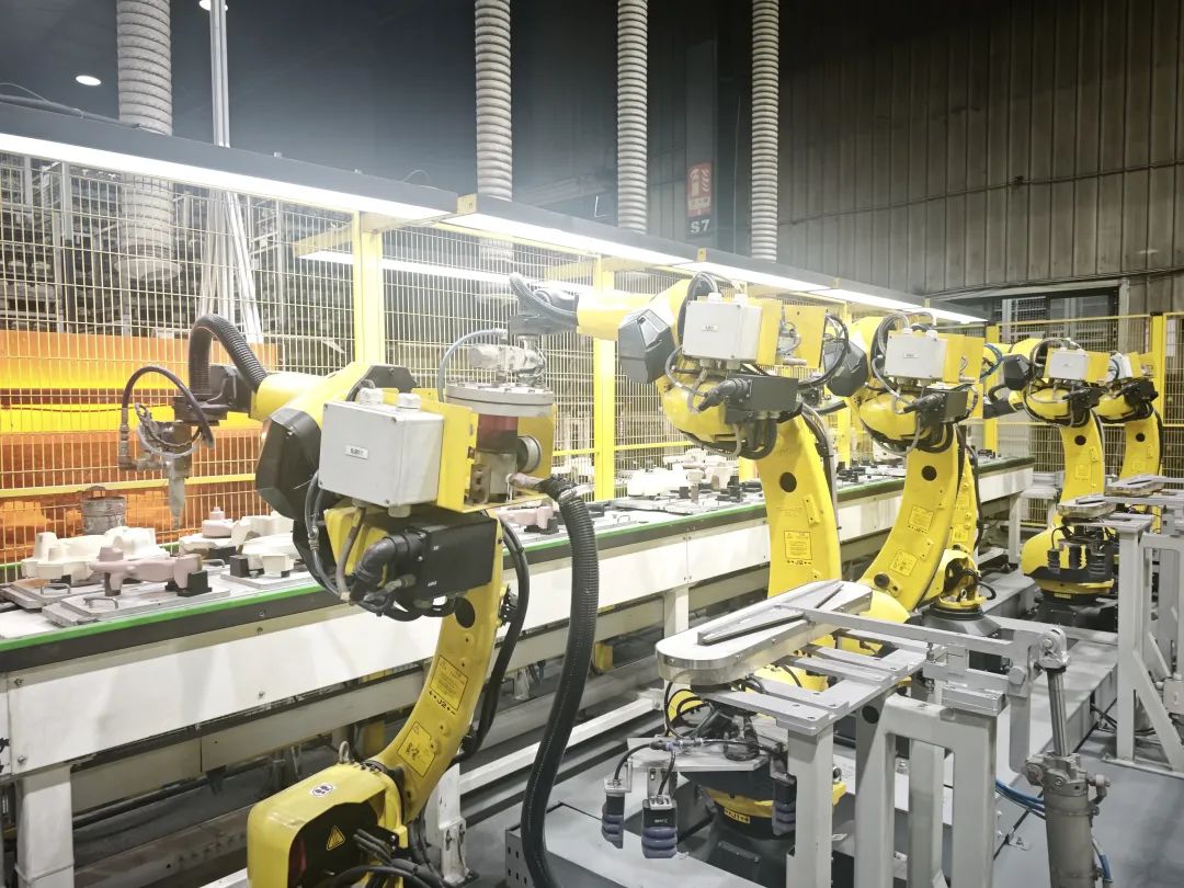▲威斯卡特武汉工厂车间,机器人正在进行砂芯组芯自动化操作