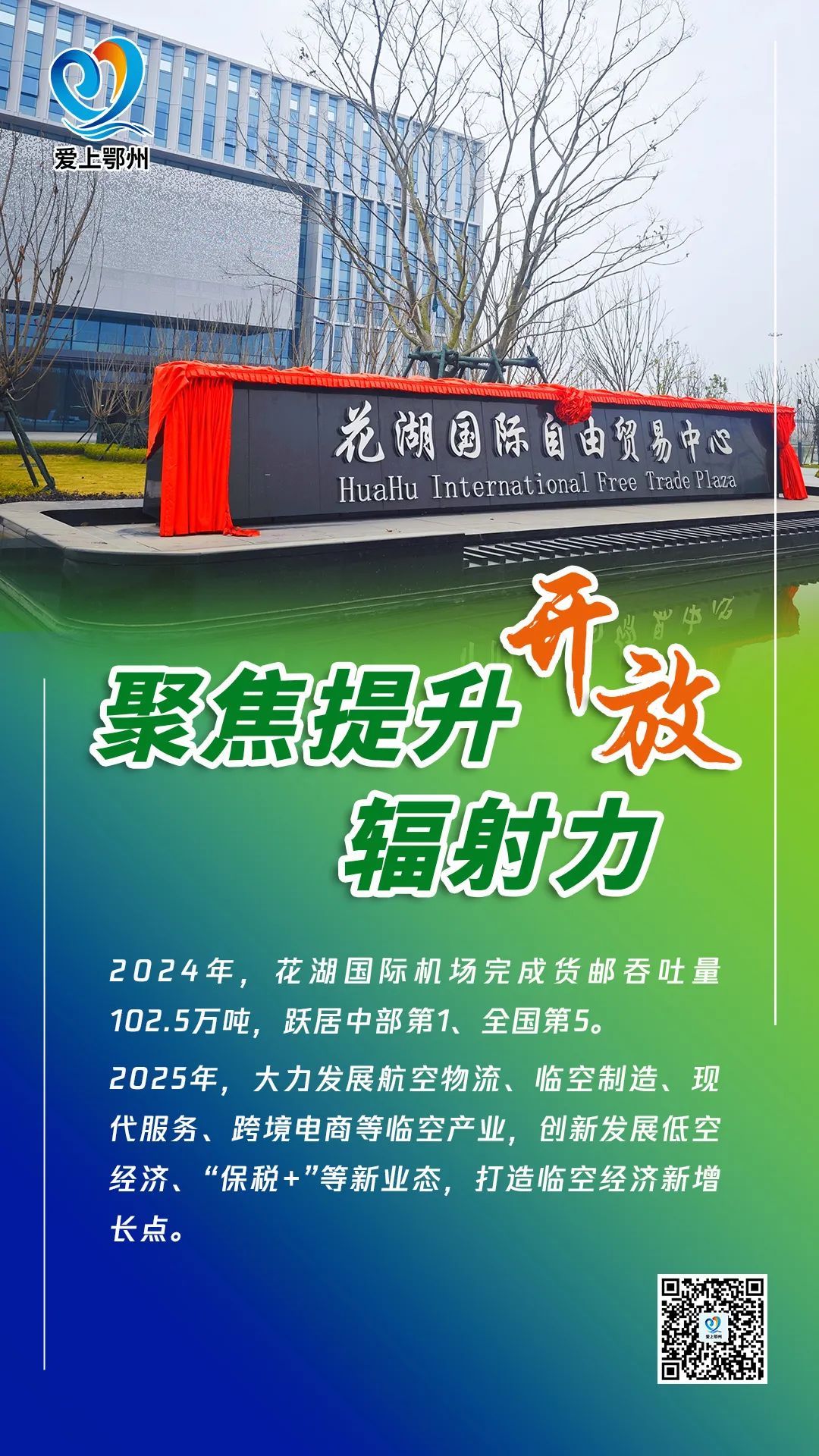 聚焦提升开放辐射力,加快打造花湖国际自由贸易航空港。统筹软件和硬件,着力提升枢纽能级;统筹申报和建设,持续拓展开放功能;统筹货物流量和经济增量,加快形成发展优势,为湖北建设国内大循环重要节点和国内国际双循环重要枢纽注入新活力。