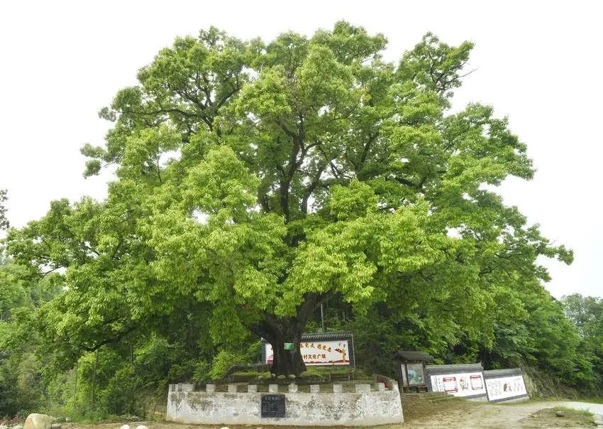 千年以来,这棵古麻栎树像一名守护神,傲然挺立在村头,见证着中股岭村的世事沧桑。村民们精心用砖栏围护,避免它受到损伤。每当茶余饭后,也都会不自觉地行至于此,仰望其虬曲苍劲的身姿,享受它华盖绿荫下的清凉。