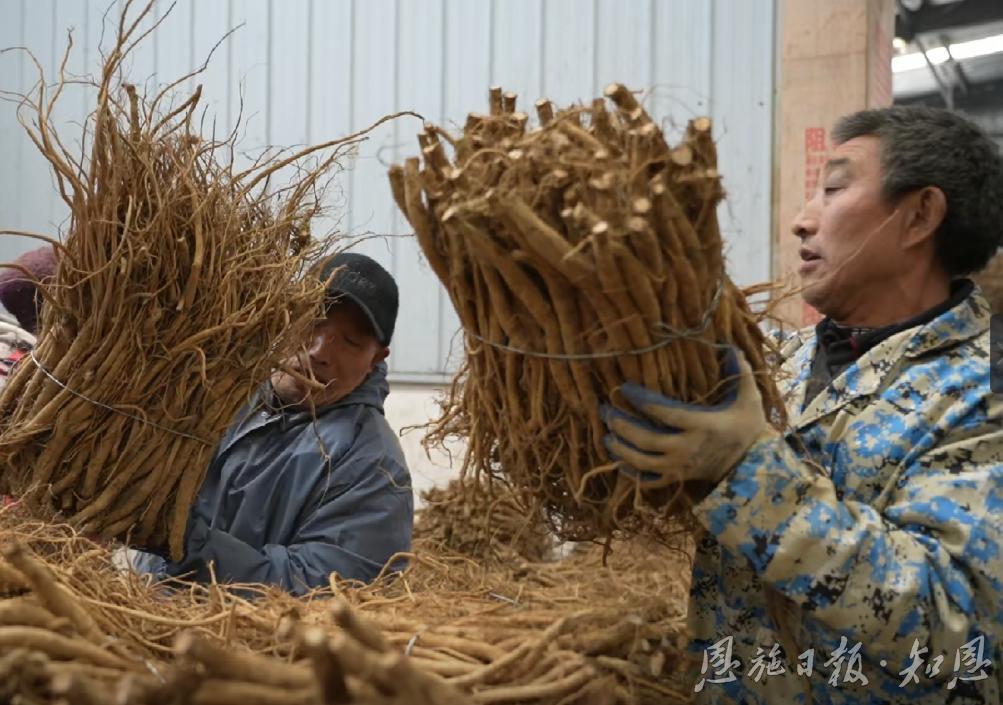 海拔1700米的恩施大峡谷风景区管理中心前山村三家坪组,雪花飞舞,寒风凛冽。坐落于此的恩施市梦春中药材专业合作社厂房内,10多名工人忙着将分拣好的生牛膝上炕、烘烤。