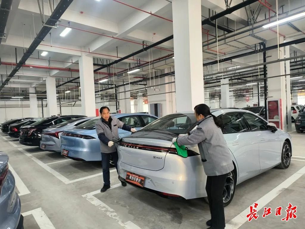 ▲工作人员对一辆车精心擦拭养护。徐丹 摄