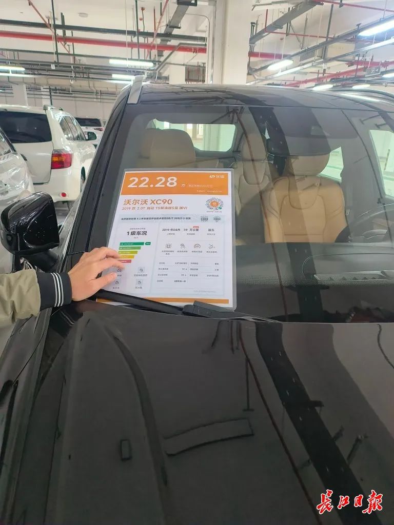 ▲车辆上的检测报告和售价信息一目了然。 徐丹 摄