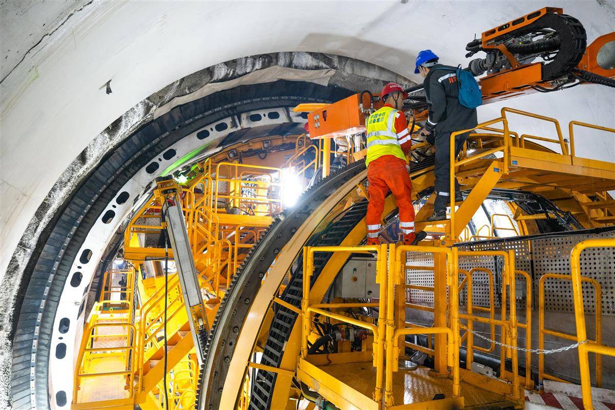 1月5日,引江补汉工程首台双护盾硬岩掘进机“江汉平安号”掘进施工现场。(肖艺九 摄)