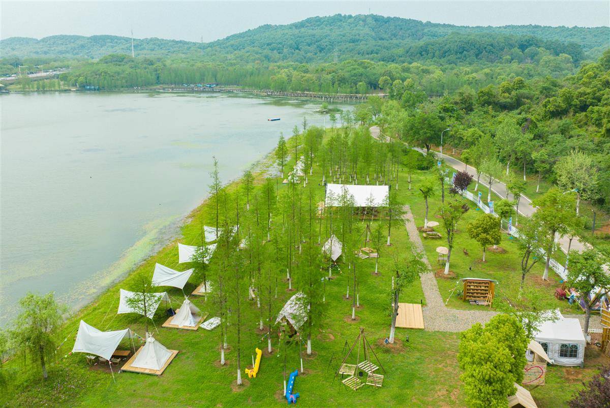治理后的通顺河武汉段水清岸绿,吸引不少市民露营打卡。(湖北日报全媒记者 薛婷 摄)
