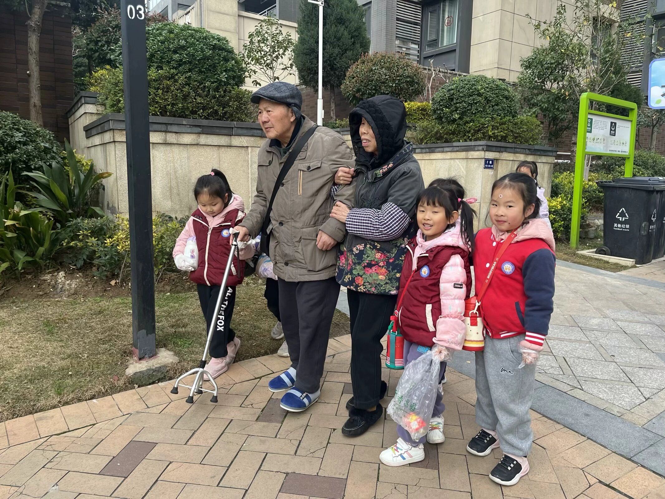 大班幼儿则走进官士墩社区开展“走进社区献爱心”活动。活动前,教师对幼儿进行了安全教育和礼仪教育。到达社区后,孩子们自信满满地为老人表演唱歌、跳舞、朗诵儿歌等节目,赢得了老人们的阵阵掌声。表演结束后孩子们帮助老人做力所能及的事,陪老人聊天,听他们讲述过去的故事,懂得了尊敬长辈、感恩社会的道理。