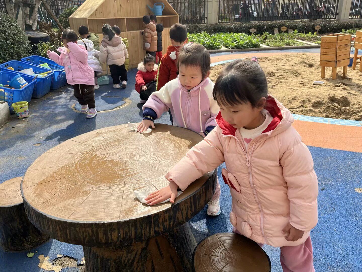 实践活动更是将此次红色教育推向高潮。小班幼儿开展“我是环保小卫士”活动,他们在教师的分组指导下,拿起小扫把、小抹布,认真地捡起操场上、花坛里的垃圾,擦拭滑梯、小椅子等玩具设施。孩子们相互协作,共同体验劳动的快乐,培养了爱护环境、讲究卫生的好习惯。