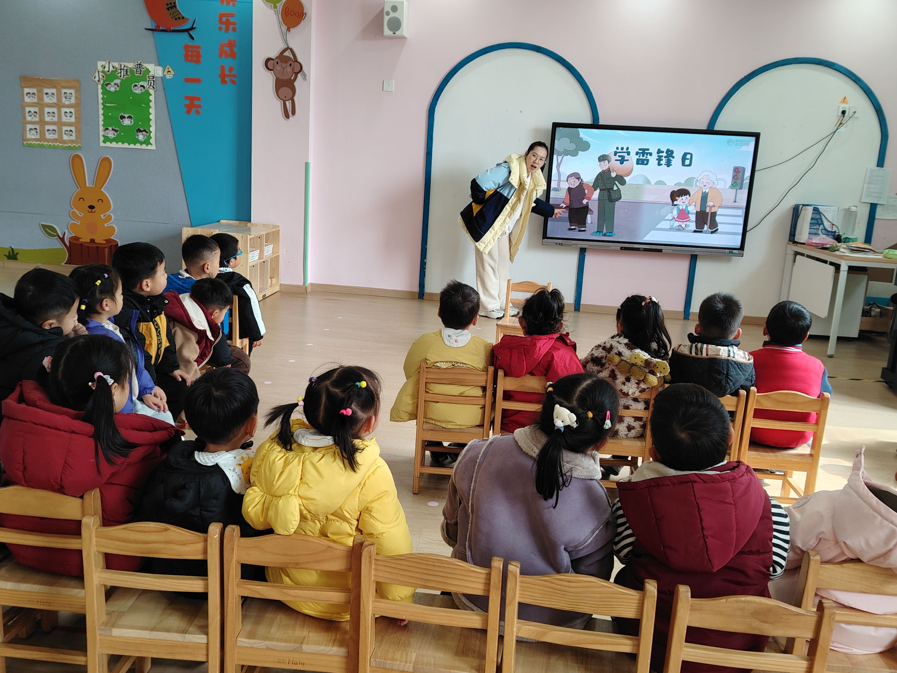 活动伊始,各班级教师借助课件、图片、故事、儿歌、歌曲等多元形式,向幼儿讲述雷锋叔叔的故事。当讲述《雷锋雨夜送大嫂》《雷锋爱学习》等经典故事时,教师同步展示相应的动画图片,孩子们目不转睛,仿佛置身于雷锋叔叔的生活场景中,深刻感受到雷锋叔叔爱党、爱国、爱人民,乐于助人、勤俭节约的高尚品质。教唱《学习雷锋好榜样》时,幼儿们积极参与动作创编,歌声嘹亮,在欢快的氛围中加深了对雷锋精神的理解和记忆。