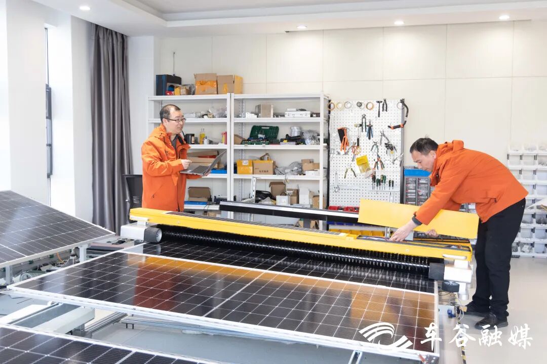 “这是我们历时一年多推出的第二代郧生系列光伏清洁机器人——‘郧生剑客’,适用于大角度、多风沙、多阵列的应用场景,可在40度倾角的光伏阵列上平稳运行。”研发中心总监康富贵指着正在测试的清洁机器人介绍,不同于传统的作业模式,公司研发的两款“郧生”系列光伏清洁机器人以轻量化和智能化为主,具有自主导航、自主定位、自主清洁和自主充放电等功能,助力光伏电站降本增效。