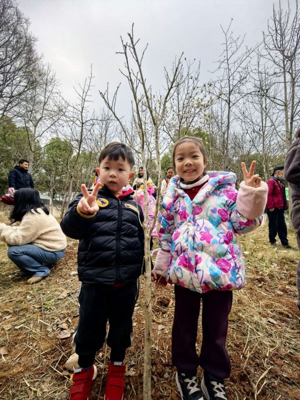 活动现场划分了“亲子林”“党员先锋林”“邻里共建林”等特色种植区,大家热情高涨,挥锹铲土、扶苗填坑、提水浇灌,一派热火朝天。老党员手把手教年轻人培土技巧,物业工作人员与居民共同规划绿植布局。孩子们在家长的指导下,或是帮忙扶着树苗,或是用小铲子轻轻培土,最后一起为树苗挂上写满环保心愿的“成长牌”。“我希望小树和我一样长得高高的!”“以后每天放学我都要来照顾它!”短短2小时,100余株桂花、樱花、红叶石楠在社区“安家”,形成一道崭新的绿色屏障。