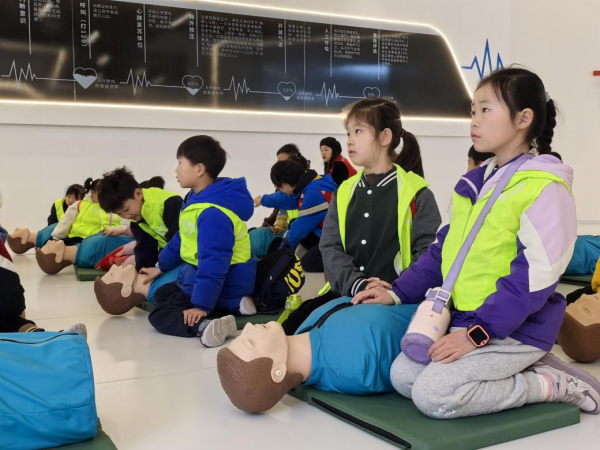 模拟实战演练,强化应急反应能力。青少年在“地震体验舱”中实践“伏地、遮挡、抓牢”自救姿势,在烟雾逃生通道中演练弯腰捂鼻撤离流程,并借助人体模型学习心肺复苏和AED操作,志愿者全程一对一指导纠正动作。此外,5D影院模拟地震场景,通过沉浸式体验深化对突发灾害的应对认知。
