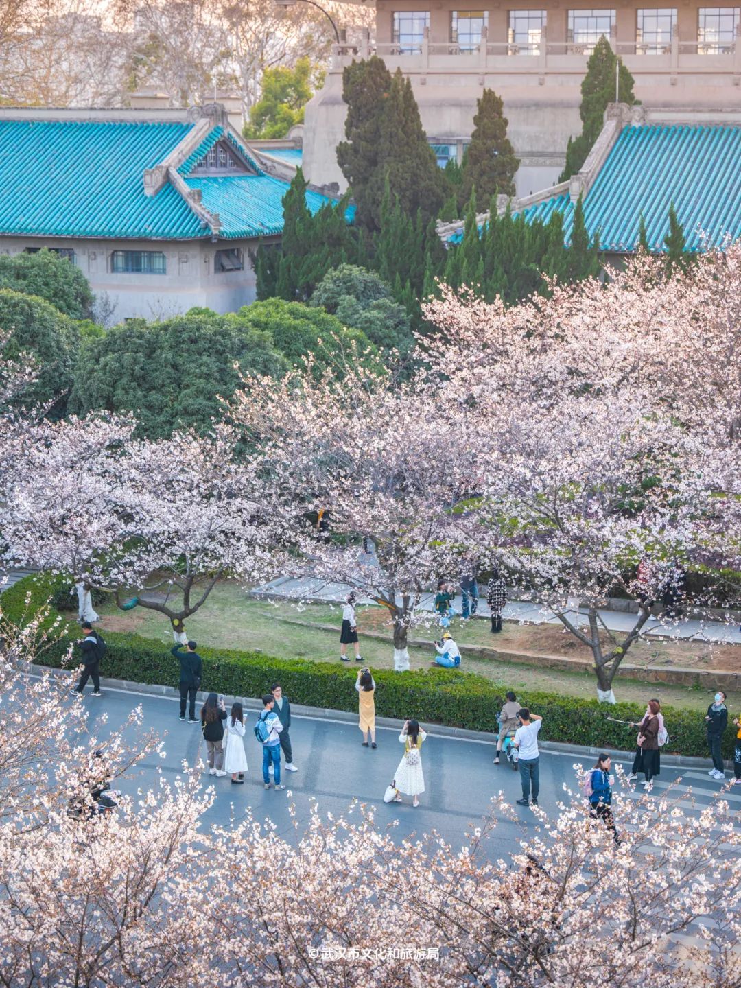武汉大学素有“最美高校”之称,每一簇樱花都交融着这所百年学府的深厚文化底蕴。校内有逾2000株樱花,品类丰富,涵盖山樱花、垂枝大叶、日本樱以及红花高盆樱等品种。