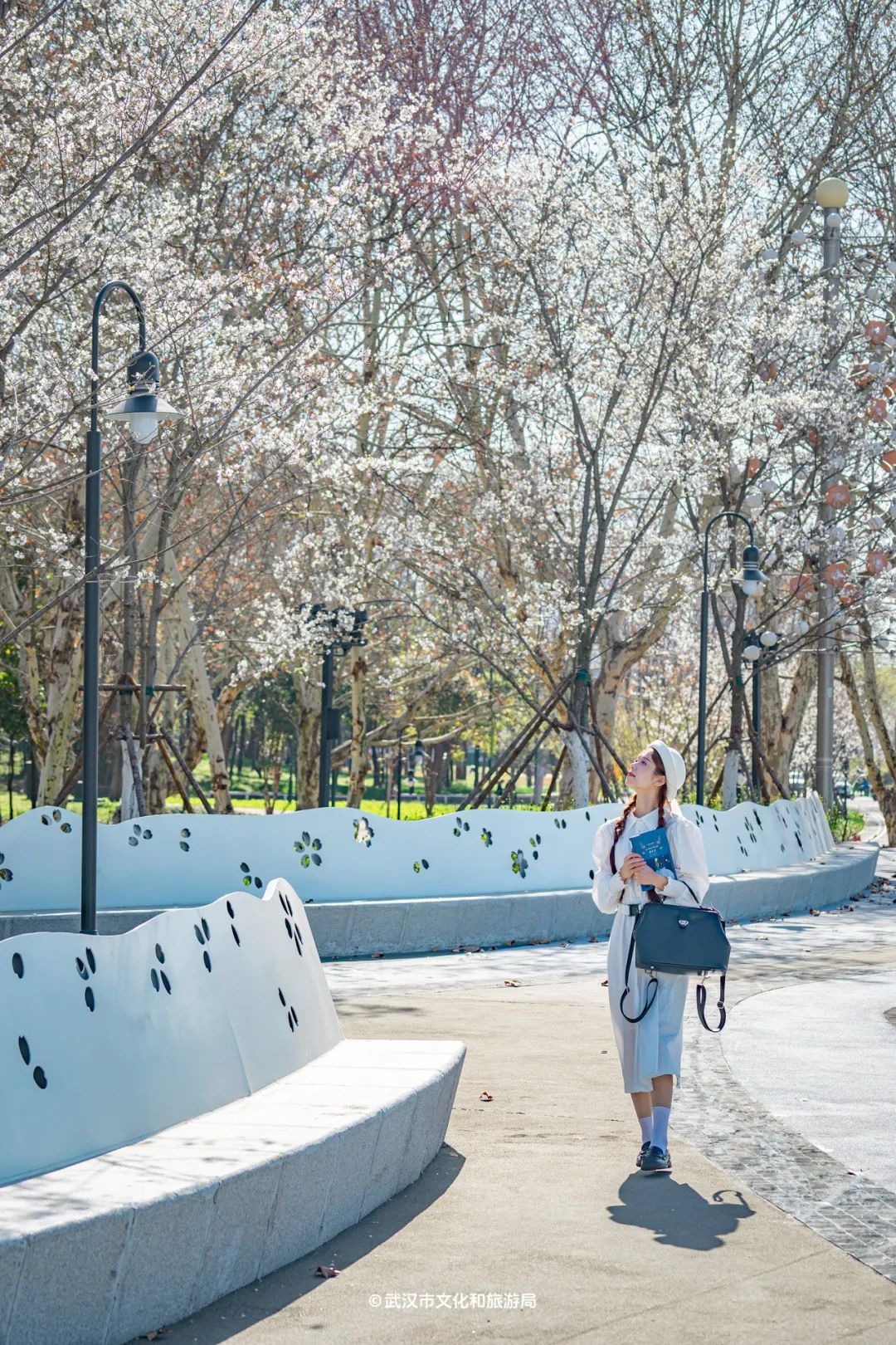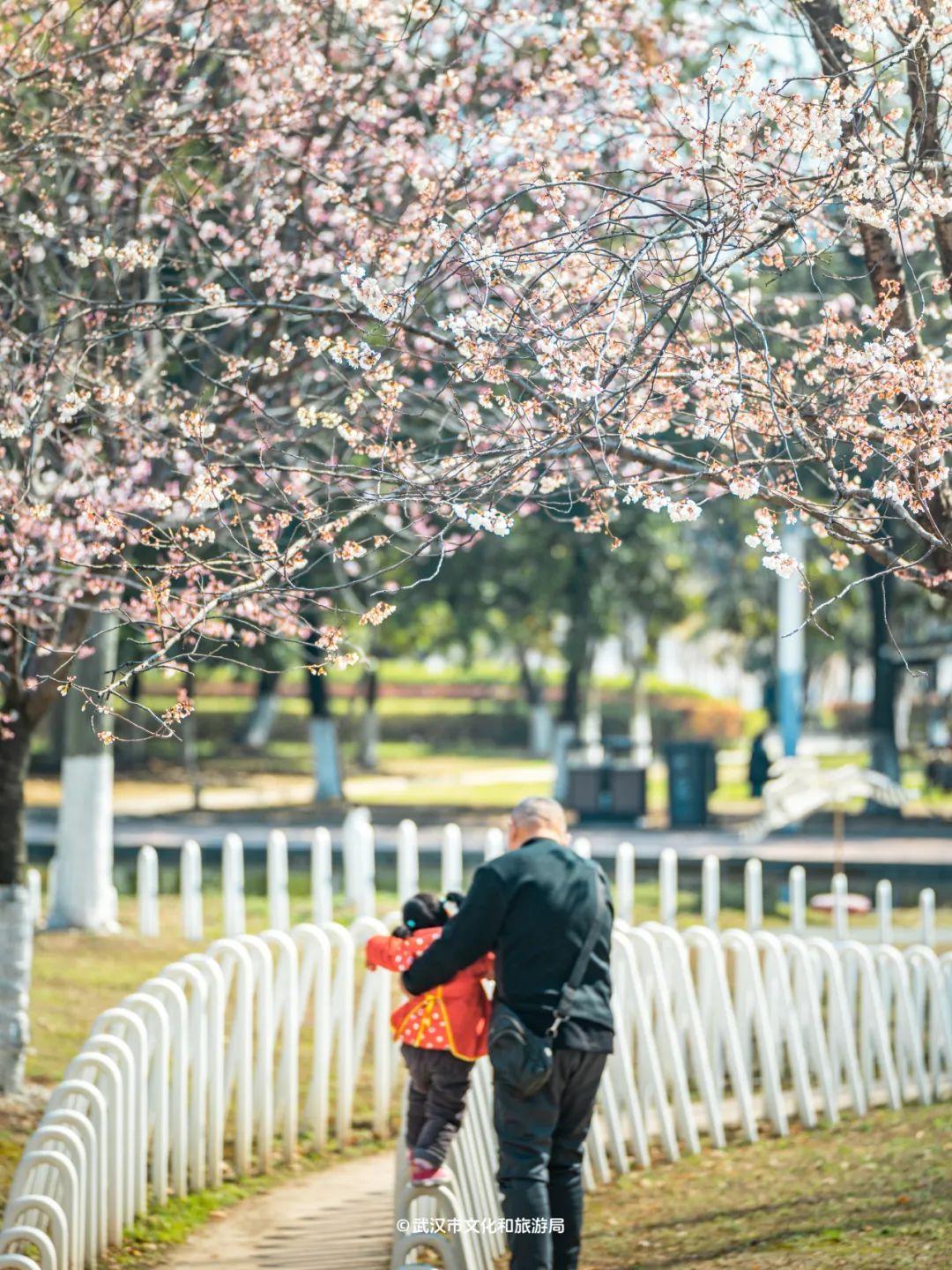 武汉首个樱花主题的免费公园,共栽种了30多个品种、2800余株樱花树,花期可持续至4月。园内还有极限运动场、全景式驿站、美食集合店……就连路灯上都有樱花瓣装饰。
