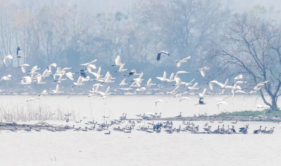 珍稀鸟类陆续回归长江中游地区,是湿地生态环境持续向好的一个缩影。鄂州作为其中的“佼佼者”,每年春秋迁飞季都有上百万的候鸟到此停歇、换羽、觅食或筑巢。