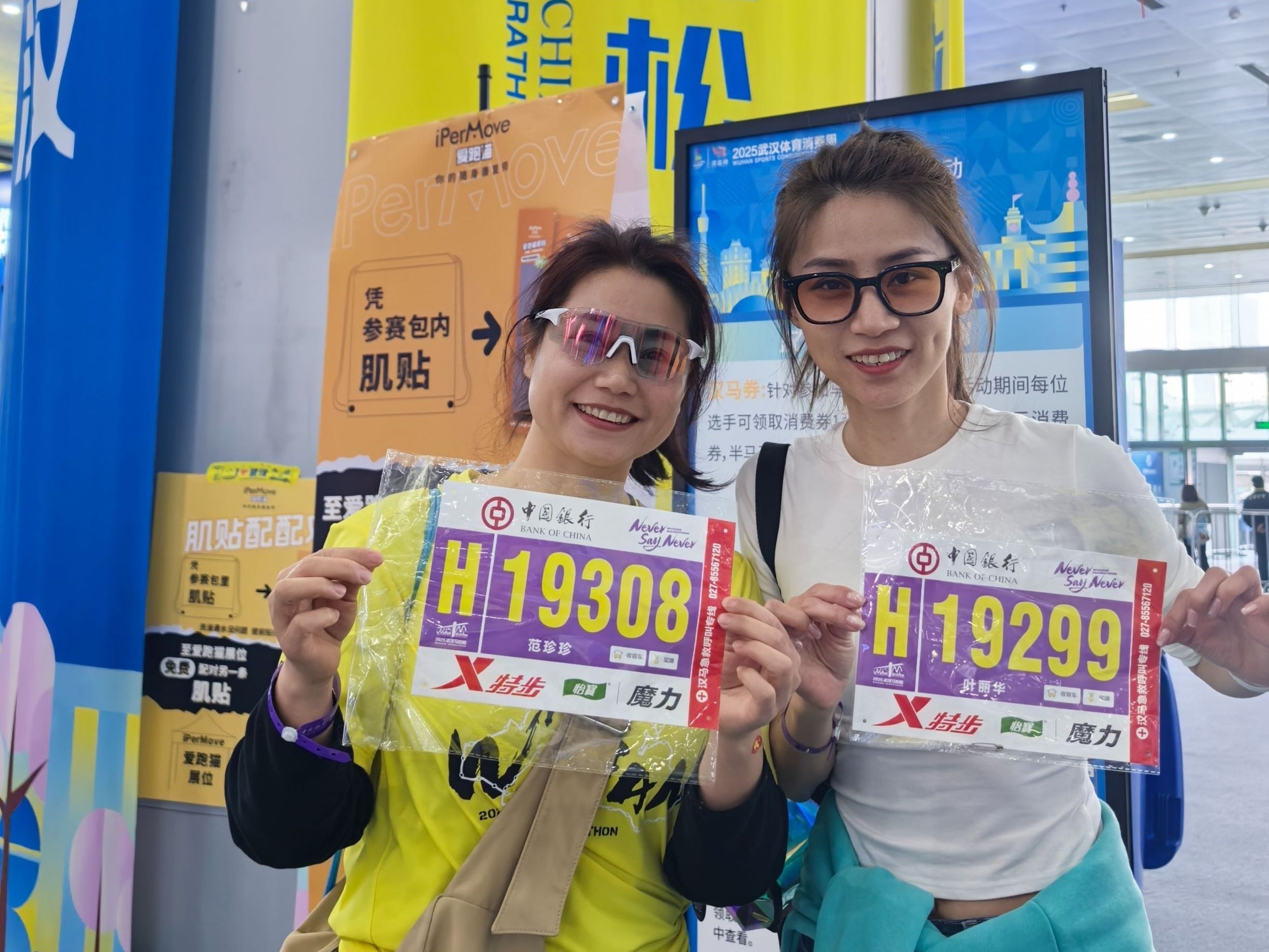 “这将是我第二次参加汉马,非常期待,也非常兴奋!”20日上午,叶丽华和她的好朋友范珍珍一起领了参赛物资,一身运动装备,笑容灿烂,步履轻盈。她们都是福建厦门人,多年前叶丽华嫁到了武汉,范珍珍嫁到了黄冈。因为同样来自厦门,且都是湖北媳妇,两人成了好朋友、好姐妹。