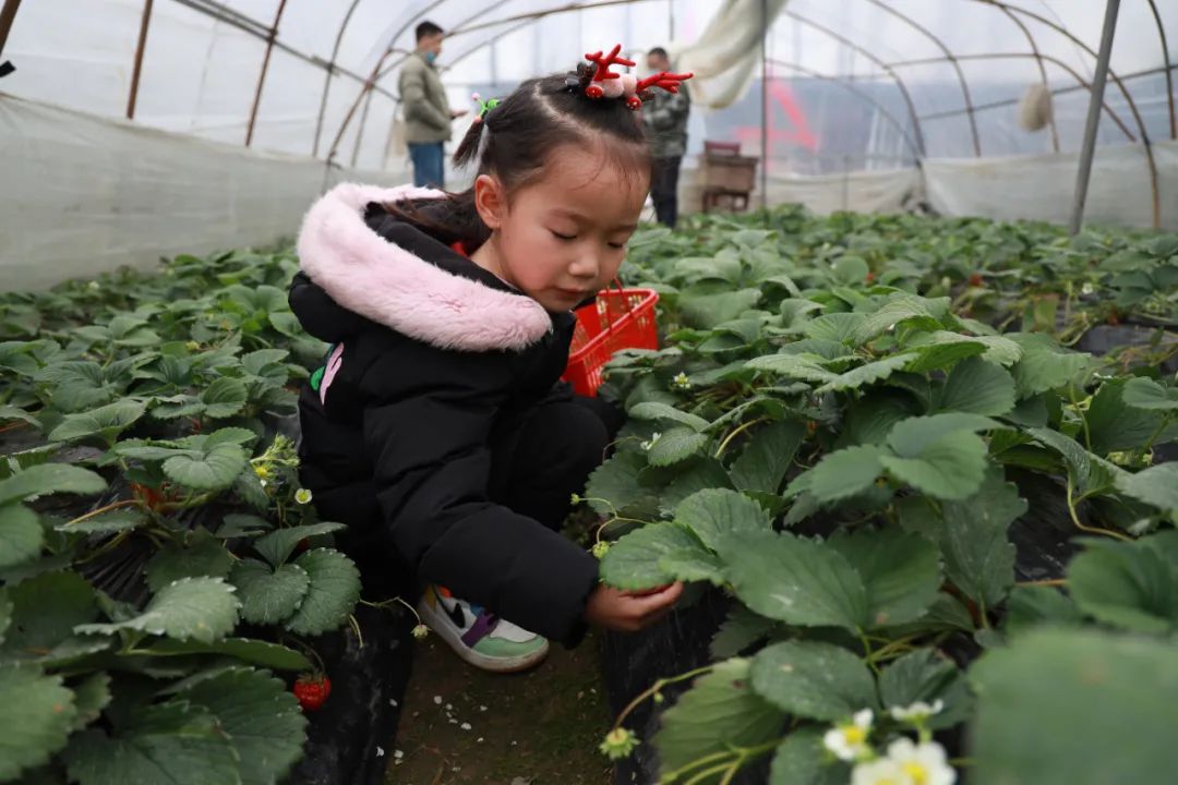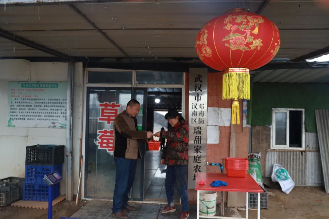车谷融媒2月5日讯 “他家的草莓又红又甜,远近闻名,今天特意从武昌过来采摘一些,过年好招待亲朋好友。”