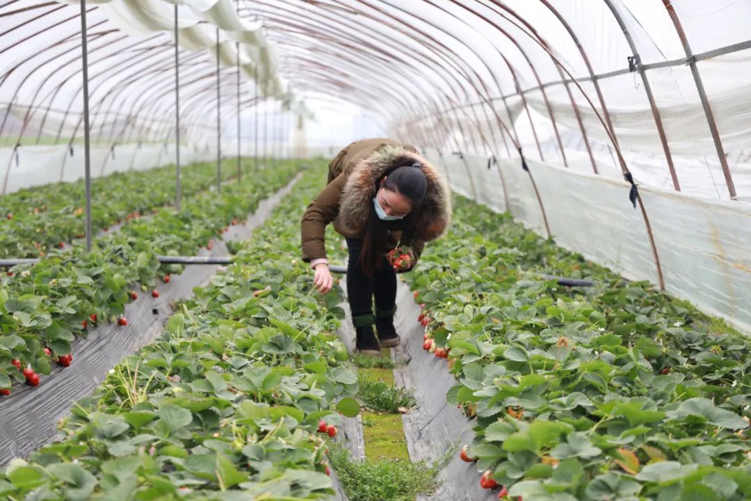2月5日,农历小年,邓南街金城村瑞甜家庭农场的草莓进入黄金采摘期,由于今年的销售行情好,农场每天收到的草莓鲜果订单应接不暇,农场主一家接待采摘顾客也忙得不亦乐乎。