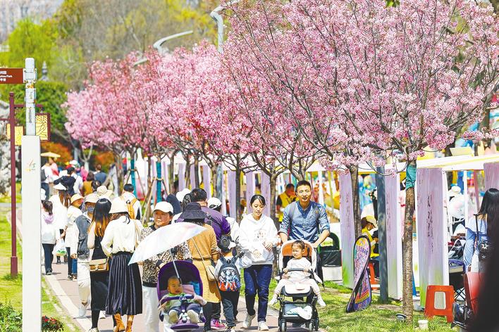 3月22日,武汉园博园汉口里花朝嘉年华活动在樱花树下启幕。3万余游客及汉服爱好者在武汉园博园踏青赏花,品味传统文化。