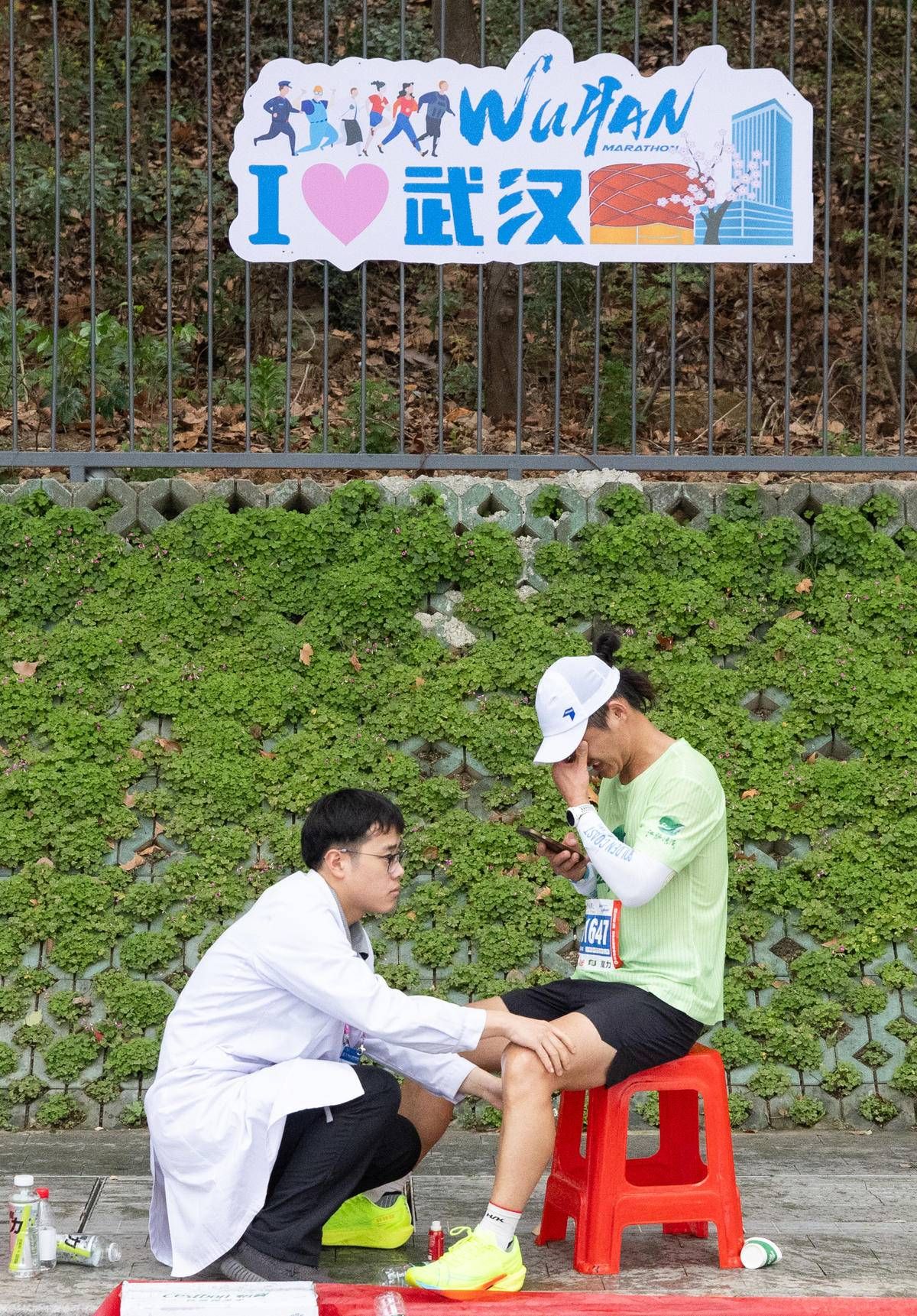 医疗志愿者为选手治疗。(湖北日报全媒记者 柯皓 摄)