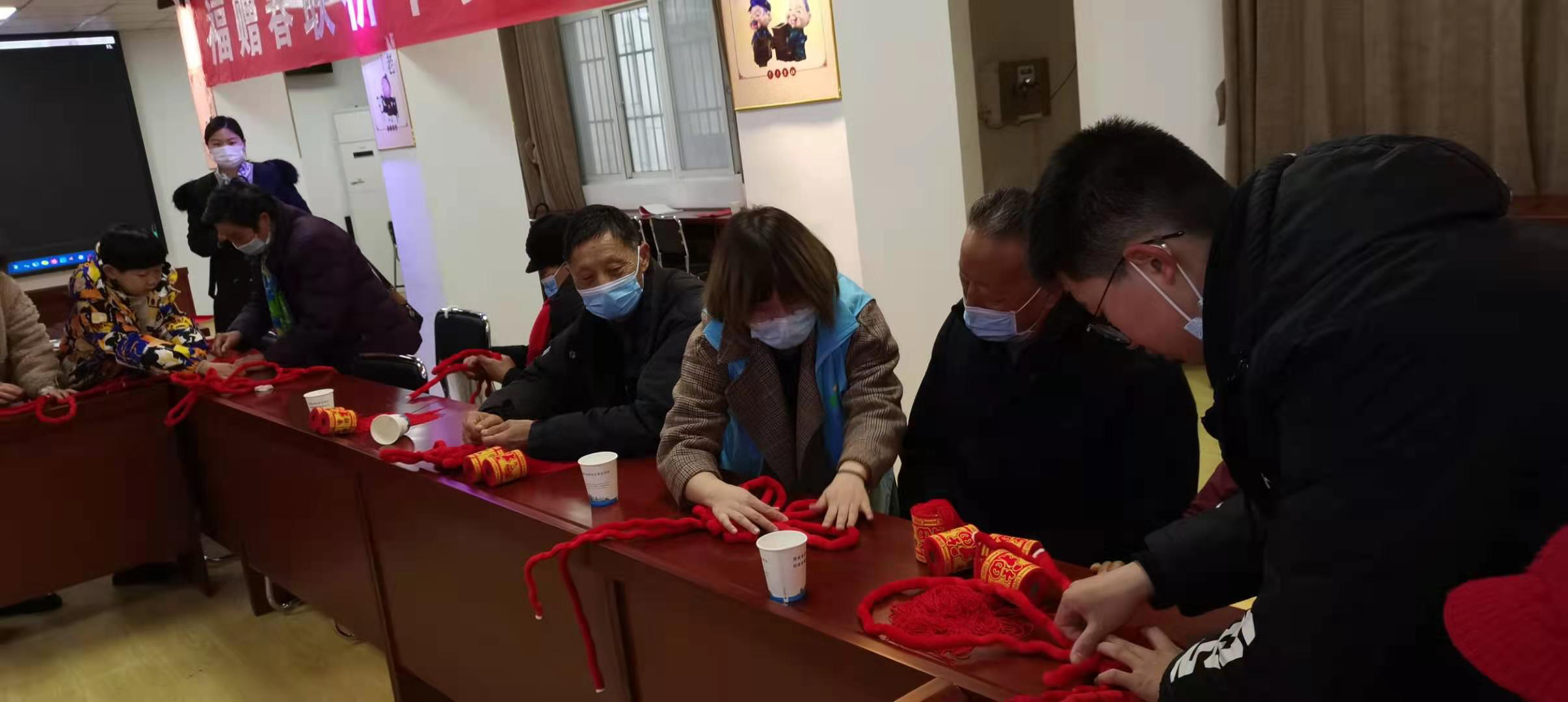 车谷融媒2月7日讯 近日,为丰富广大居民群众精神文化生活,营造欢乐喜庆、文明祥和的节日氛围,纱帽街新兰社区开展“福赠春联祈平安,严控防疫贺新春”为主题的写春联、编中国结活动。