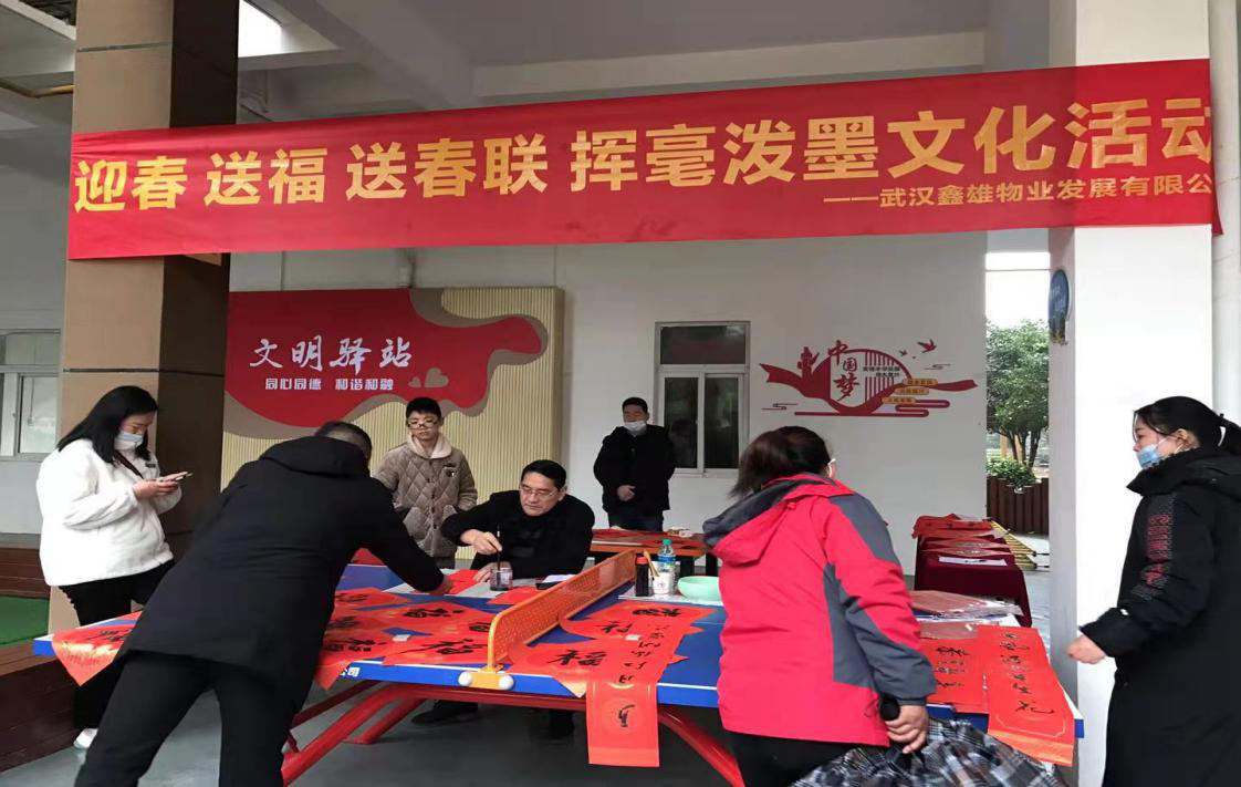 “又是一年新年到,见面问声新年好......”2月5日,喜庆欢快的迎新曲响彻汉武国际城小区,在5栋架空层文明驿站,一幅幅红红火火的春联挂满了墙面,一场由业主委员会发起、物业公司搭台、居民唱戏的“迎春送福送春联”活动正热闹开展。