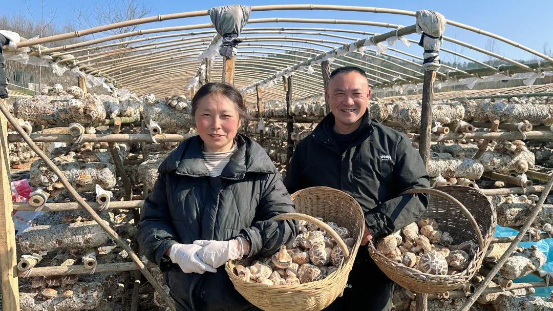 在塔儿山村,陈爱平和她的丈夫像往常一样,熟练地采摘香菇。“我们种了20多年的香菇,今年种了一万多袋,行情好的时候能赚十几万元。”她乐呵呵地说。
