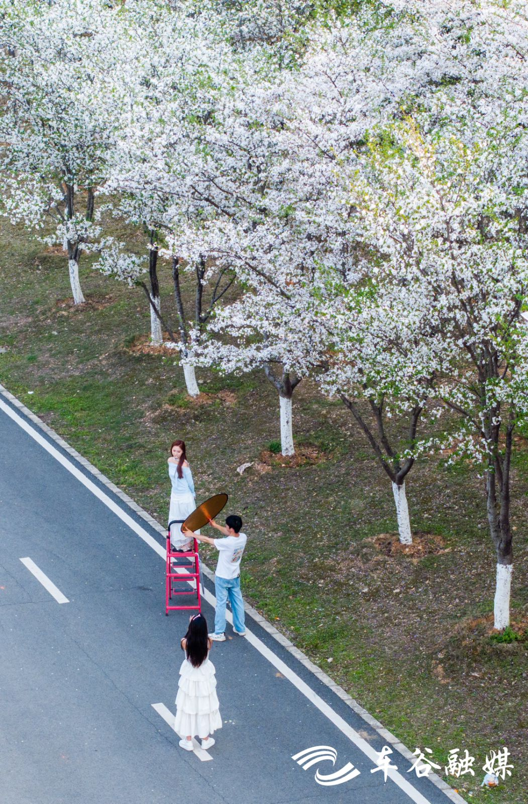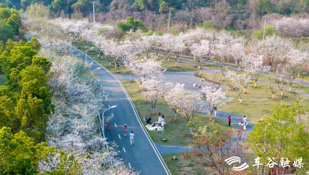 赏花自然少不了春天的“顶流”。龙灵山樱花谷里,大岛樱纯白花瓣如绢帛裁就,毫无杂色浸染。