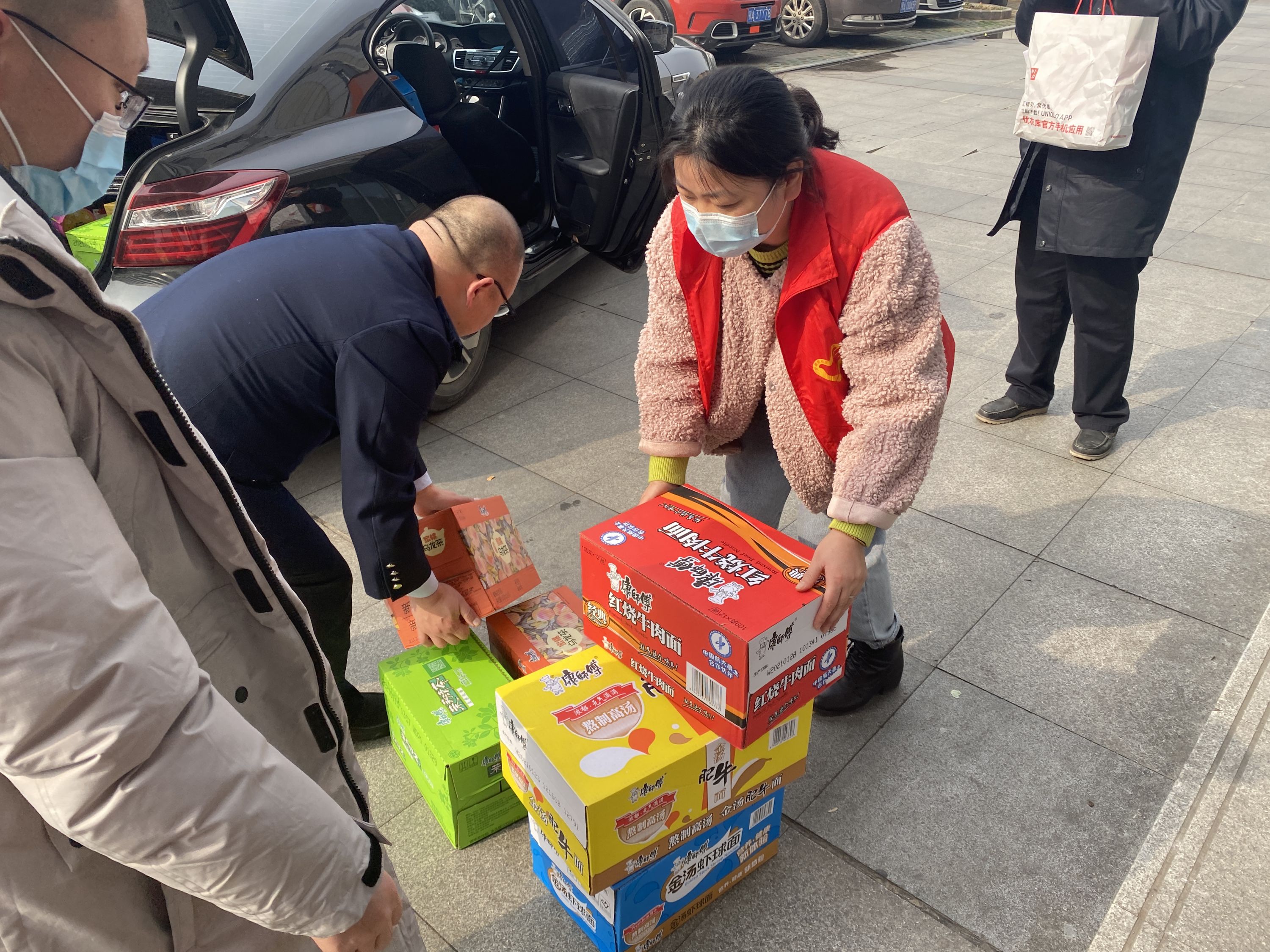 送春联活动结束后,宁康园社区“第一书记”解国政联合所在区税务局党支部,为辖区东风商用车、海尔“就地过年”员工送上“新春福包”。贴春联、送福字,看着搬过来的一箱箱的泡面、饮料,海尔厂区负责人感到暖胃、更暖心。
