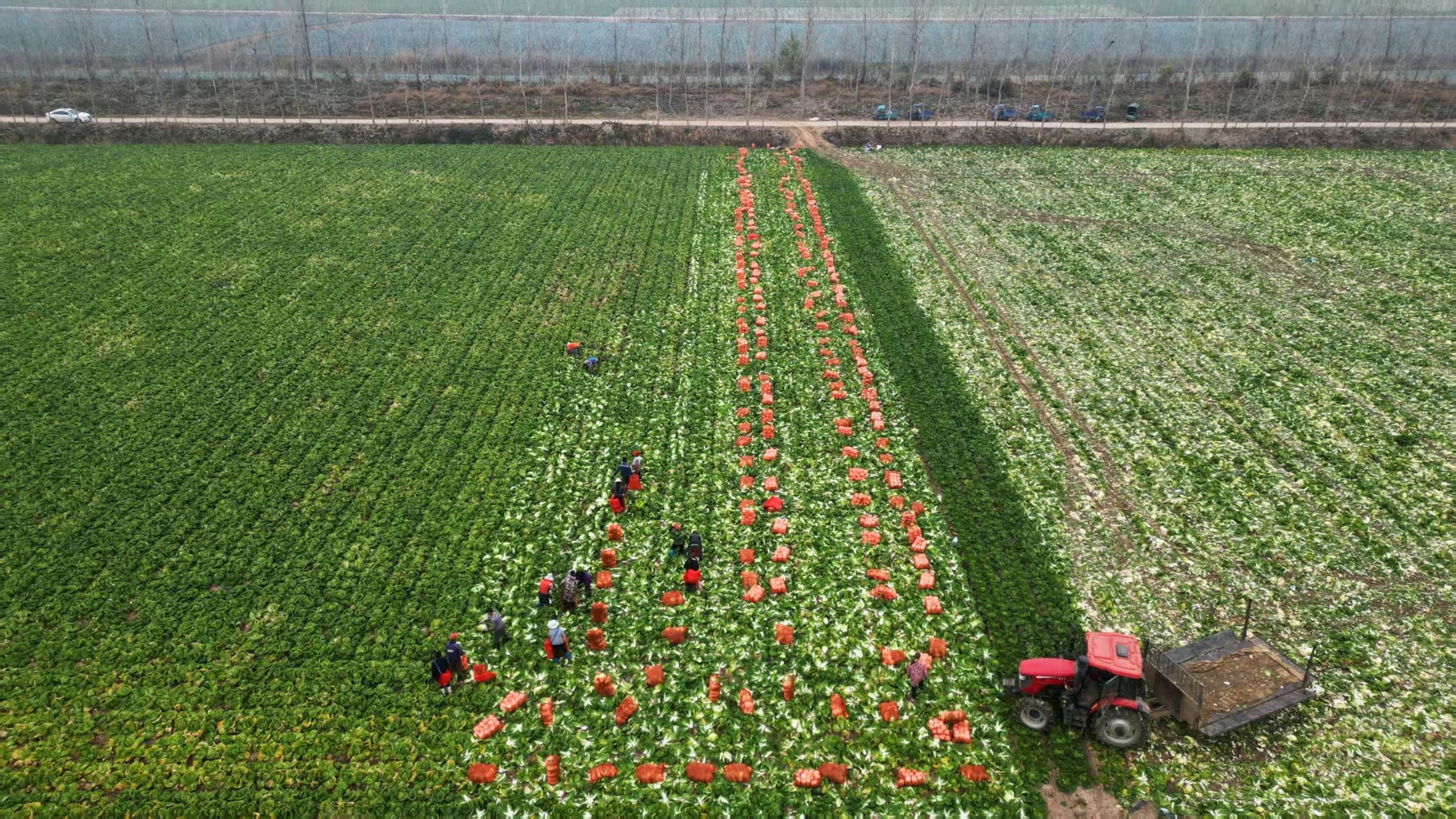 县潘家湾镇的湖北省嘉红蔬菜有限公司物流集散中心里,一辆装满春甘蓝的卡车整装待发。“32吨甘蓝,目标山东菏泽。”亚军物流驾驶员史小建接过出货单,启动引擎。