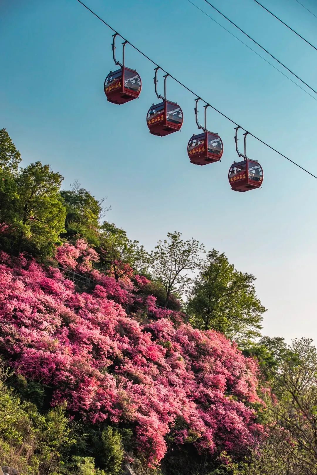 海拔约700米,花期最晚,预计4月中下旬进入盛花期,可乘坐索道在空中赏花。(从景区入口步行前往约1.5小时)
