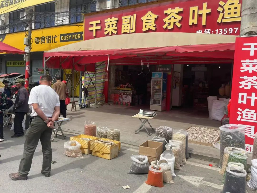 4月16日,正是檀林赶集日。一大早,檀林街上刘国安的干菜店铺早已门庭若市,干竹笋、干萝卜、干豆角,干辣椒等等,各种干菜是摆了一地,连下脚的地方都没有。