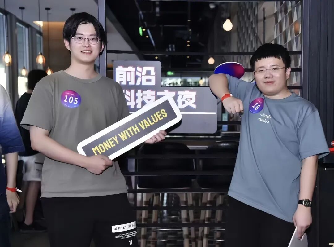 ▲魏蓝天(右)和钱浩在创业沙龙活动上的合影。