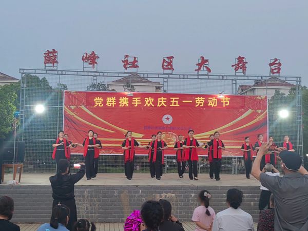 车谷融媒5月1日讯 “五一”国际劳动节来临之际,为大力弘扬劳动精神,弘扬爱岗敬业、无私奉献的正能量。4月26日晚,沌阳街道薛峰社区联合辖区文体团队,开展五一文艺汇演活动。