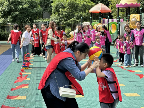 在“为爱运球”接力赛中,孩子们需与家长协作运输篮球,一轮一轮为爱加分;“信任前行”环节要求家长或背或抱娃跨越障碍,体会育儿不易。当《妈妈我爱你》童声旋律响起,孩子们排好队列,为妈妈们送上特别准备的节日舞蹈。