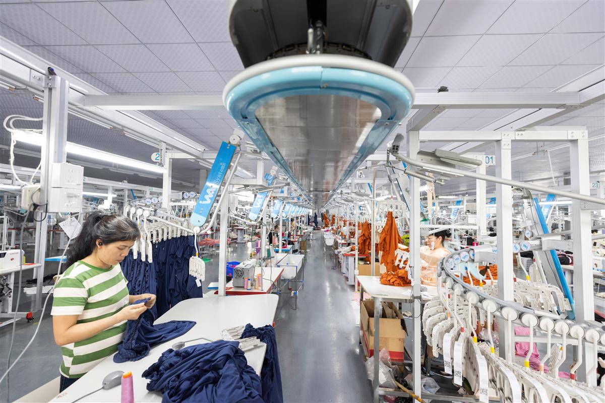 天门悦姿服饰有限公司生产车间,工人在赶制订单。(湖北日报全媒记者 柯皓 通讯员 许磊 摄)