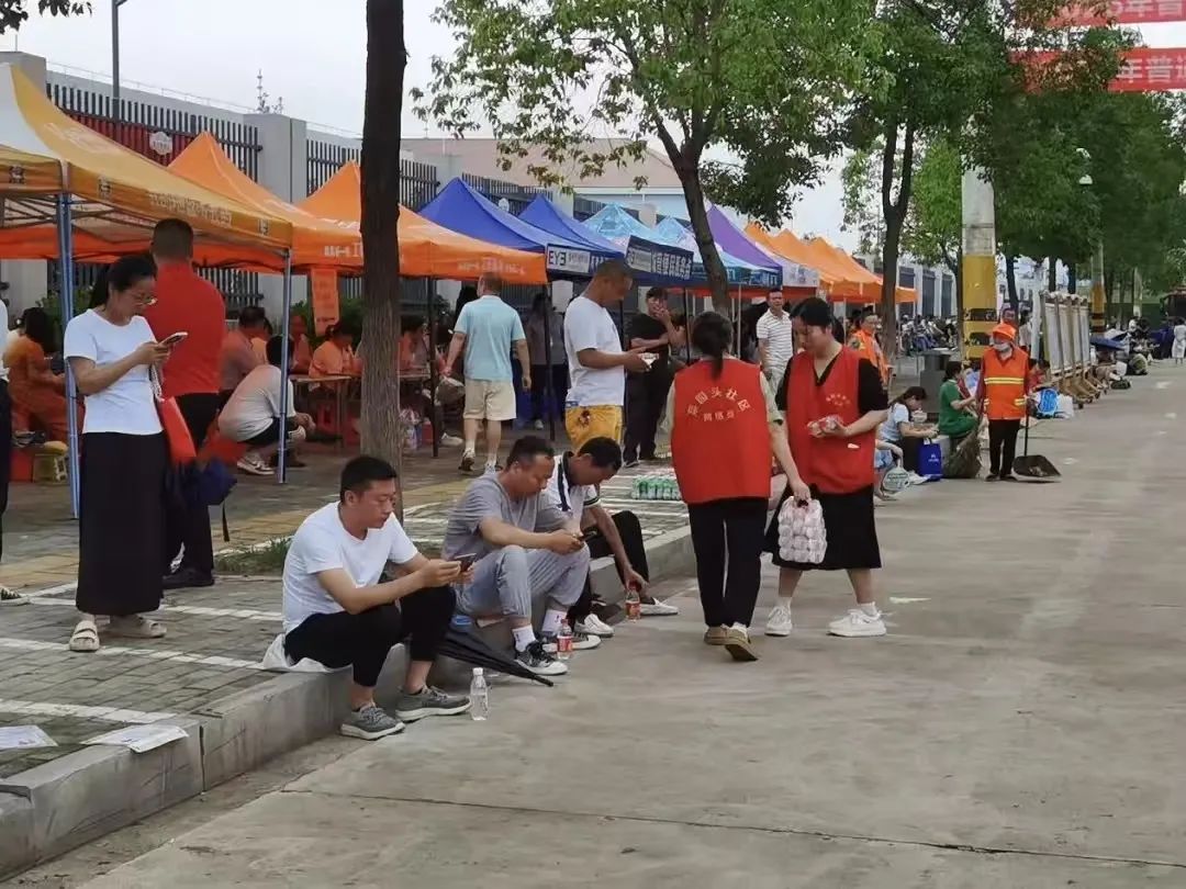 考点外,避雨遮阳棚如雨后春笋般搭起,众多爱心企业设置了助考服务站,为考生、家长及执勤人员送上饮用水、药品与清凉。更有家长在体验便捷送考服务后感动承诺:“未来我也要加入志愿者行列!”