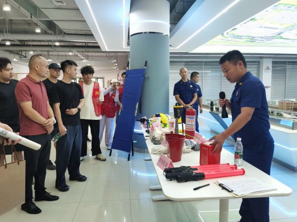车谷融媒6月10日讯 6月6日上午,沌阳街道薛峰社区联合武汉经开科创服务有限公司在2045创新谷园区,举办消防安全及应急技能宣传活动。