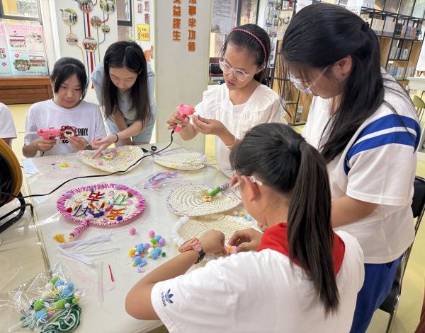 最受欢迎的“创意蒲扇DIY”环节,堪称“多巴胺创意大赏”。草编扇面化作画布,刺绣贴、彩绳、毛球等材料变身灵感画笔。有人用彩绳给扇柄编出“彩虹辫”,有人用可爱刺绣贴“住”进扇面,还有人将“毕业加油”“青春不散场”的滚烫誓言嵌在扇面。一把把独一无二的蒲扇成为毕业季最鲜活的记忆载体,这是属于他们的“青春定制款”,更是可以握在手中的“逐梦小太阳”。