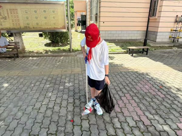 上午9点,五十余名学生志愿者身披红马甲,与社区工作者组成“清洁突击队”。大家手持扫帚、垃圾夹等工具,对社区主干道、绿化带开展地毯式清扫。学生志愿者孙嘉懿踮着脚清理灌木丛中的塑料袋,额头的汗珠顺着脸颊滑落:“我奶奶总说小区干净住着才舒心,今天终于能出份力了。”