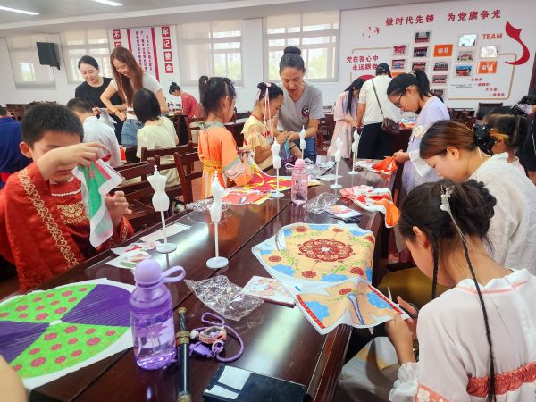 汉服制作环节,孩子们则秒变成“小小裁缝师”,拿起针线、剪刀和布料认真缝制汉服。在孩子们的不懈努力下,一件件独具匠心的汉服新鲜出炉。他们欣赏着汉服的纹理,感受着传统服饰的独特魅力,仿佛触摸到了千年的文化脉络,也体会到了匠人匠心的难能可贵。