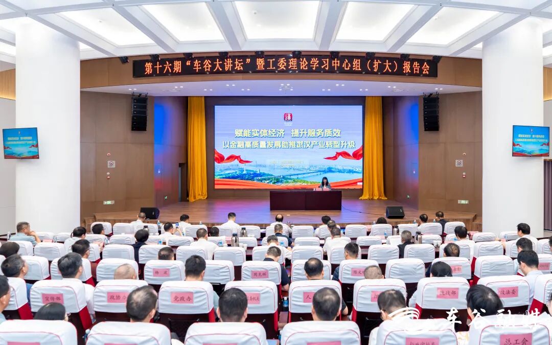 车谷融媒7月26日讯 7月25日,武汉经开区举行第十六期“车谷大讲坛”暨工委理论学习中心组(扩大)报告会。市委金融办分管日常工作的副主任、市地方金融管理局局长叶晓飞作《赋能实体经济 提升服务质效 以金融高质量发展助推武汉产业转型升级》专题辅导报告。