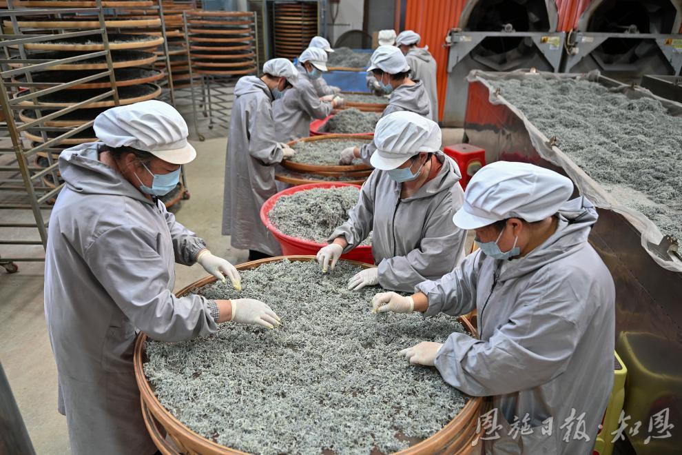 工人正在精细挑选藤茶。(通讯员 唐俊 摄)