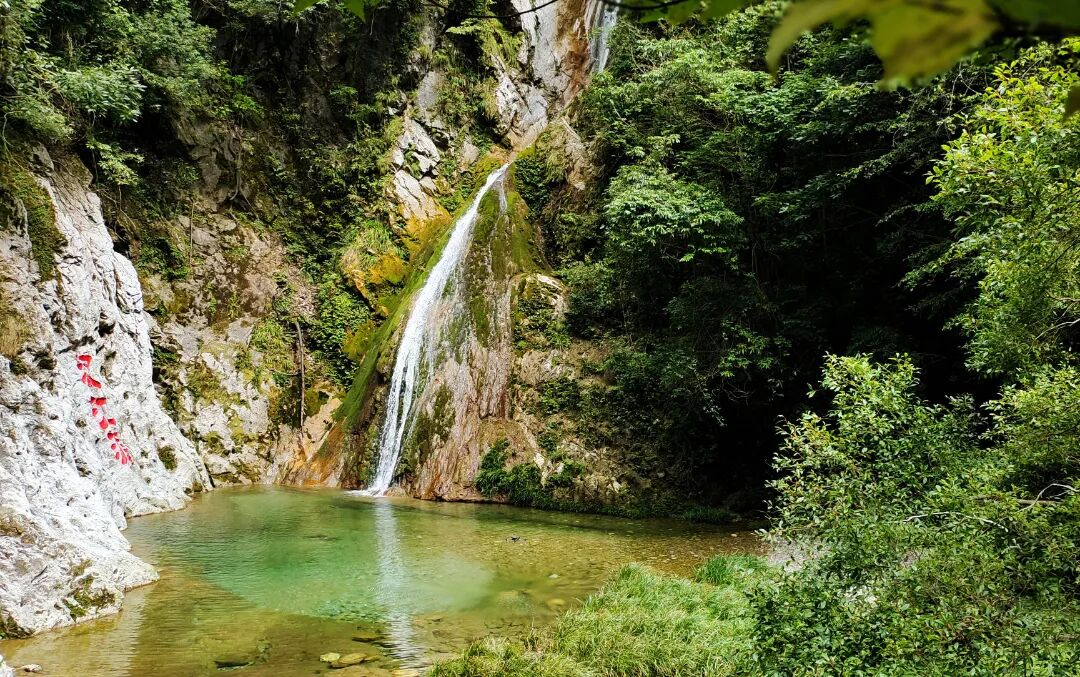 溪水从山崖倾泻而下,汇为平静的潭水。崔慧芬 摄